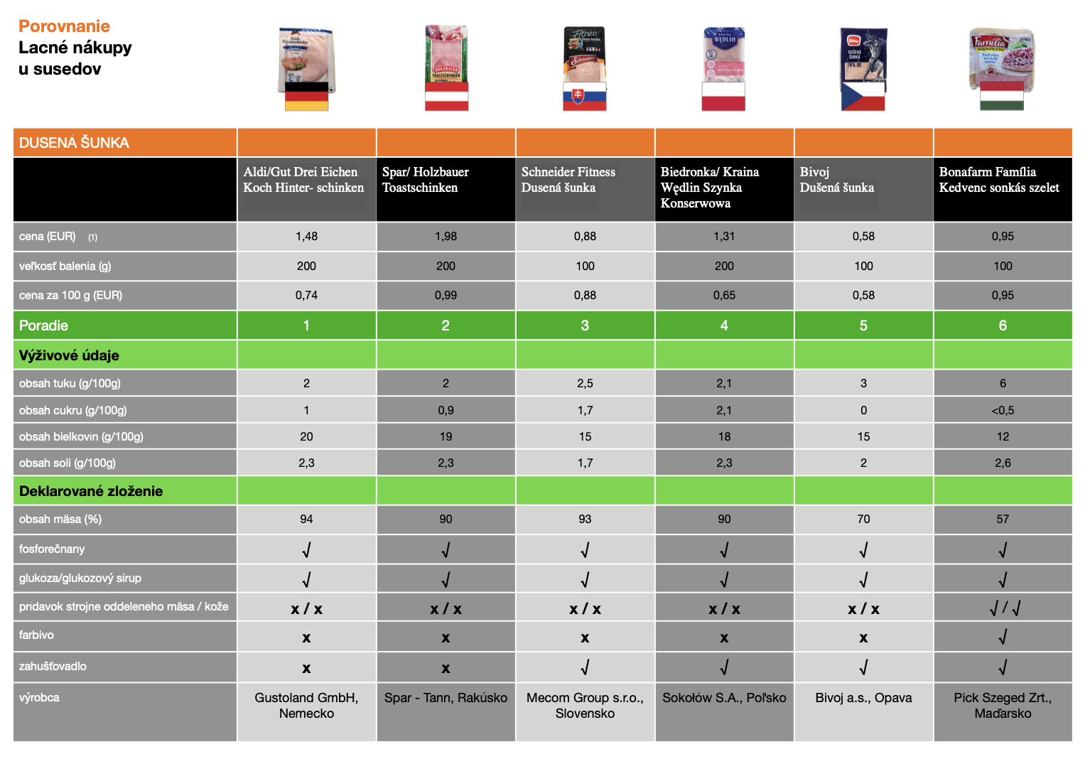 Pred troma rokmi česká spotrebiteľská organizácia dTest obišla okolité štáty, aby zistila kvalitu tamojších najlacnejších potravín. V lete pokus v spolupráci so slovenskou spotrebiteľskou organizáciou Spoločnosť ochrany spotrebiteľov (S.O.S.) Poprad zopakovali. Obišli šesť krajín, v každej nakúpili podľa rovnakého zoznamu a následne porovnali zloženie nakúpených vzoriek. Celkovo porovnali 79 chladených a mrazených výrobkov.